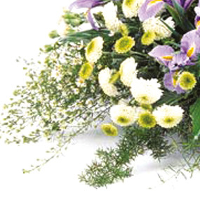 La perte d’un être cher est une épreuve douloureuse dans une vie. C’est pourquoi Fleurs en Deuil vous propose de faire livrer un coussin de fleurs lors de l’enterrement de votre proche, afin de transmettre un message de condoléances et apporter votre soutien à la famille du défunt. Fleurs en Deuil a sélectionné pour vous ce coussin de fleurs piquées pour des funérailles, dans les tons de blanc et mauve pour que vous puissiez rendre un dernier hommage à la personne décédée lors de ses obsèques. Cette création florale aux couleurs douces est composée d’iris mauve (pouvant être remplacées par du freesia ou une autre variété de fleurs similaire), de refours, d’alstroemeria rose, et d’aster. Pour peaufiner le tout, des feuillages de salal viendront apporter du volume à cet arrangement floral de deuil. Cette création florale mauve et blanche sera réalisée avec de belles fleurs fraîches par un artisan fleuriste. Il choisira pour vous des fleurs coupées, qui sont des fleurs naturelles (jamais de fleurs artificielles) afin que la confection florale rende un bel hommage au défunt et apporte une consolation à la famille endeuillée en cette douloureuse épreuve. Comme les fleurs utilisées par nos fleuristes sont des fleurs de saison, les fleurs de cet arrangement floral bicolore seront variables selon les saisons et la disponibilité en magasin. Cependant votre coussin de fleurs blanches et mauves conservera la forme, l’esprit et la couleur de la pièce florale initiale.