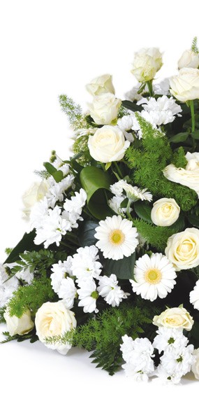 Vous ne pouvez pas vous rendre à l’enterrement d’un proche mais vous souhaitez tout de même lui rendre un dernier hommage et apporter votre soutien à la famille du défunt ? Fleurs en Deuil vous propose ce magnifique coussin de fleurs blanches de forme conique du petit nom de “Pureté”, en référence au langage des fleurs funéraires. Cette création florale unicolore se compose de roses blanches, de gerberas blancs et de refours blancs. Afin que l’harmonie florale soit au rendez-vous, vous retrouverez du feuillage fait de branches d’asparagus et de fougères qui viendra mettre en valeurs toutes les variétés de fleurs présentes dans cette confection florale. Votre coussin de fleurs pour deuil sera réalisé par un artisan fleuriste avec de belles fleurs de saison, qui sont des fleurs naturelles (jamais de fleurs artificielles), c’est pourquoi les fleurs seront variables selon les saisons et la disponibilité en magasin. Faire livrer des fleurs avec Fleurs en Deuil c’est avoir un large choix de lieux de livraison, peu importe le type de cérémonie.